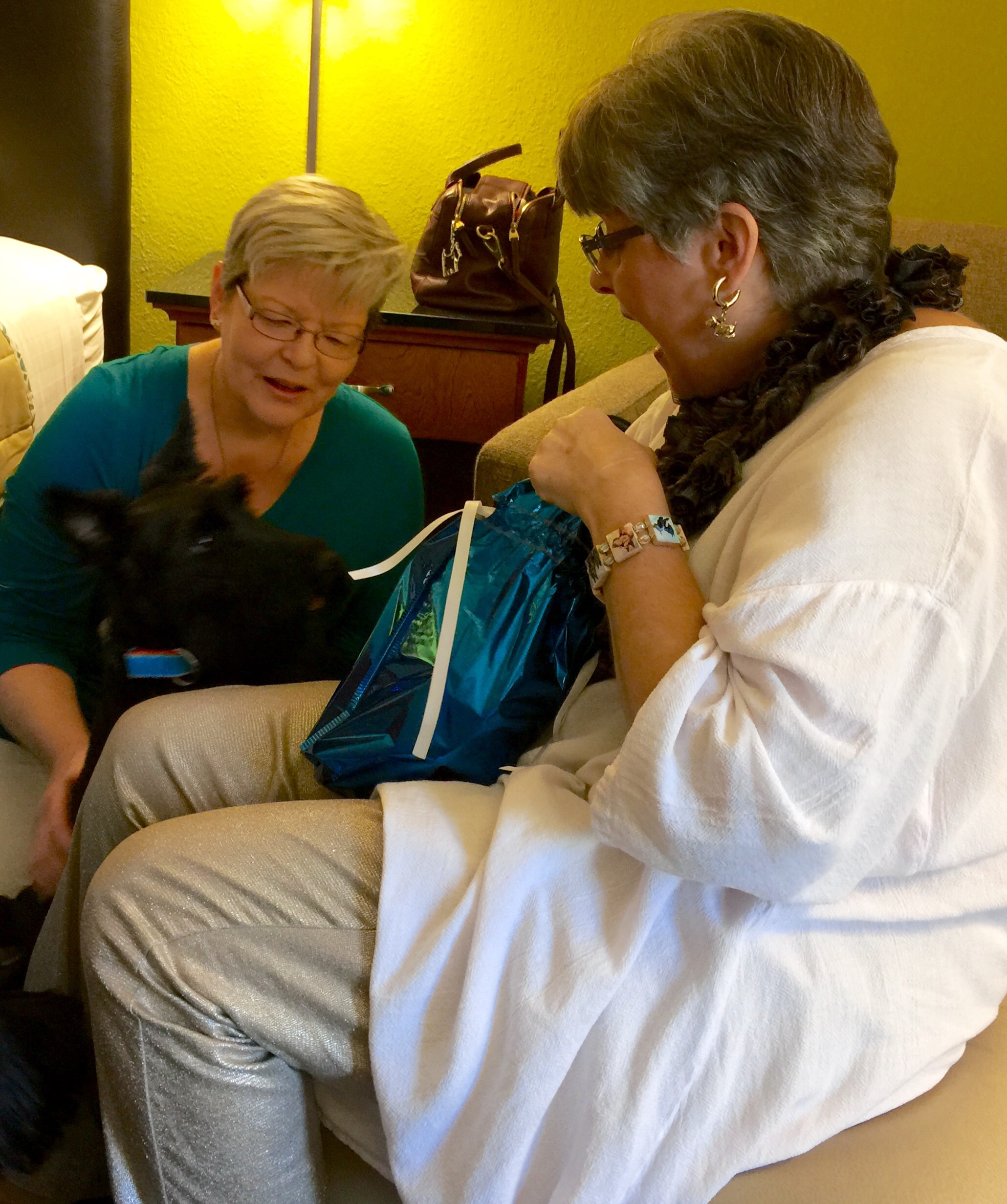 It was another great evening with Scottie friends before Mom’s Tuesday tests. Leah McIntosh and Barbara Brandt came by to see us.